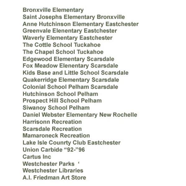 I am BOCES listed and fingerprinted. Over the years I have taught countless numbers of kids at many schools and locations. Each school was and is wonderful in its own way. From kindergarten to middle school, I enjoyed opening up the imaginations of the children. Many are surprised to see what they can create. What remains constant is the energy and vibrancy they bring with them. This of course is a source of youthful energy for me which imbues my teaching.